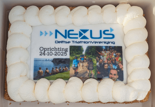De oprichting van zo’n nieuwe triathlon vereniging kan je natuurlijk niet zomaar voorbij laten gaan. Om dit te vieren hebben we mini-triathlon gedaan; een (korte) dip in de Delftse Hout, vanwege de storm een rondje op de stadsfiets in plaats van de tt-fiets en natuurlijk een rondje hardlopen op de Col Du Mac! Om weer op te warmen waren er daarna gelukkig taart en bubbels.