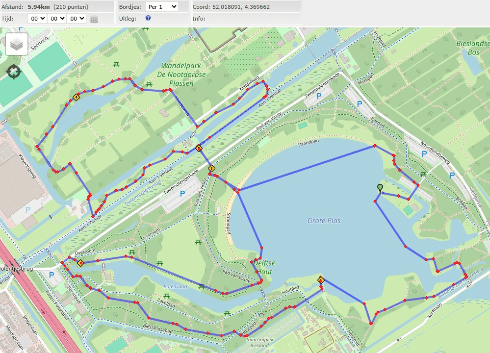 Er worden twee afstanden georganiseerd. Er is een rondje uitgezet in het Delftse Hout. Zie hieronder voor het parcours. Het rondje wordt 1 of 2 keer gedaan.